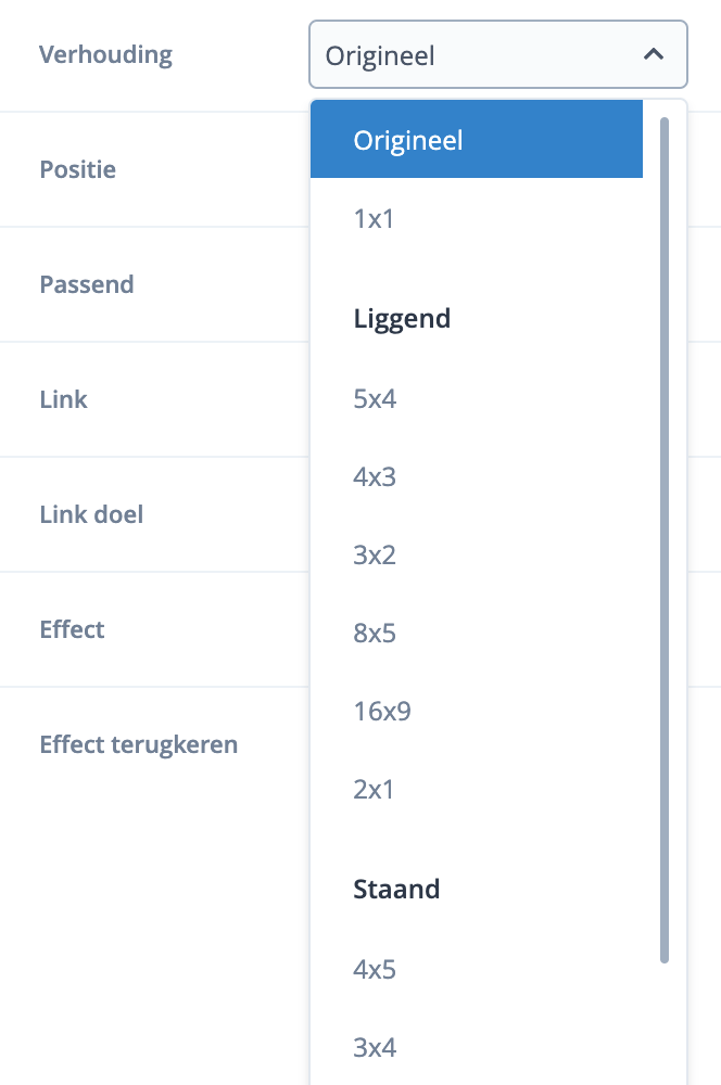 * Dit is een algemeen advies en kan in individuele gevallen anders uitpakken. Controleer zelf na uploaden of de afbeelding op de verschillende schermgroottes naar wens wordt getoond. De hoogte is afhankelijk van de gekozen verhouding.