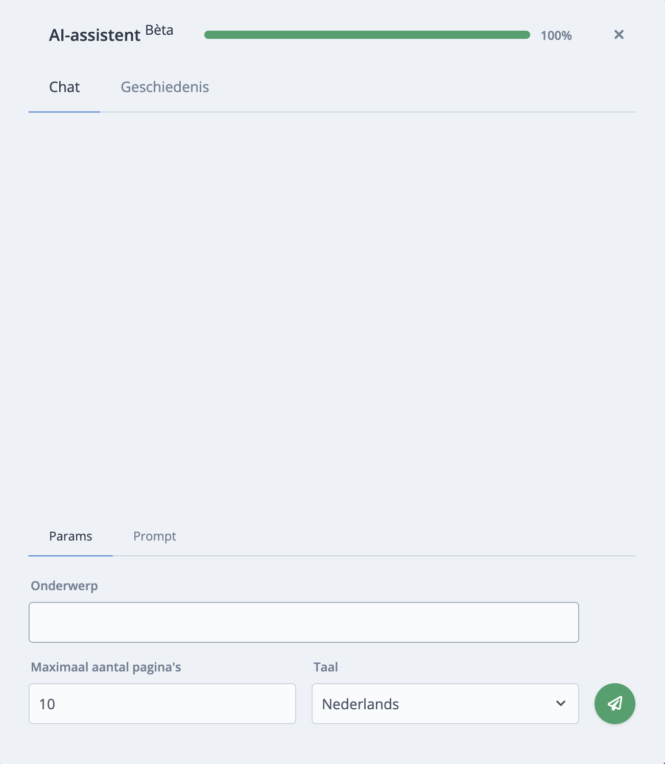 Stap 3: Geef in de AI-assistent een onderwerp op en klik op verzenden.