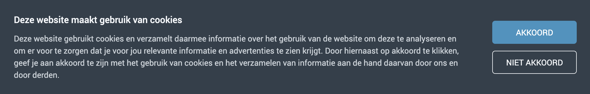 Let op: Een cookiemelding wordt na accepteren niet meer getoond. Het kan dus zijn dat jij je eigen cookiemelding na sluiten/accepteren niet meer ziet. Door de cookies/cache van je browser te legen zal de cookie weer verschijnen.