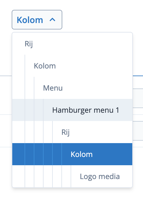 Er verschijnt nu een uitklapvenster met daarin de structuur van het menu. Eén van de items heeft de naam "hamburgermenu x". Selecteer deze.