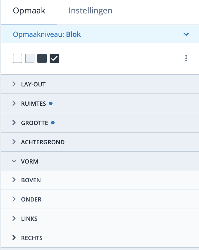 In het overzicht met vormen waaruit je kunt kiezen zullen de vormen getoond worden welke zijn aangemerkt voor de door jou geselecteerde zijde (boven, onder, links, rechts).