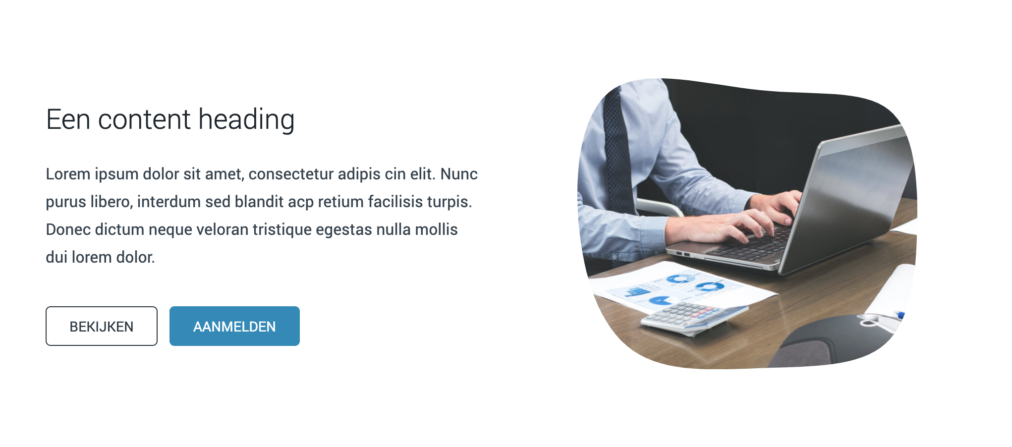Blokken zijn recht wanneer je deze op de pagina sleept. Je kan deze voorzien van een vorm waardoor één of meerdere zijden niet meer recht zijn. Zie het voorbeeld hieronder.