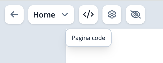 Om de code van een blok aan te passen klik je op de code-knop welke in het blokmenu staat. Zie onderstaande afbeelding. Je kan dan de HTML, CSS (LESS) en Javascript bewerken.