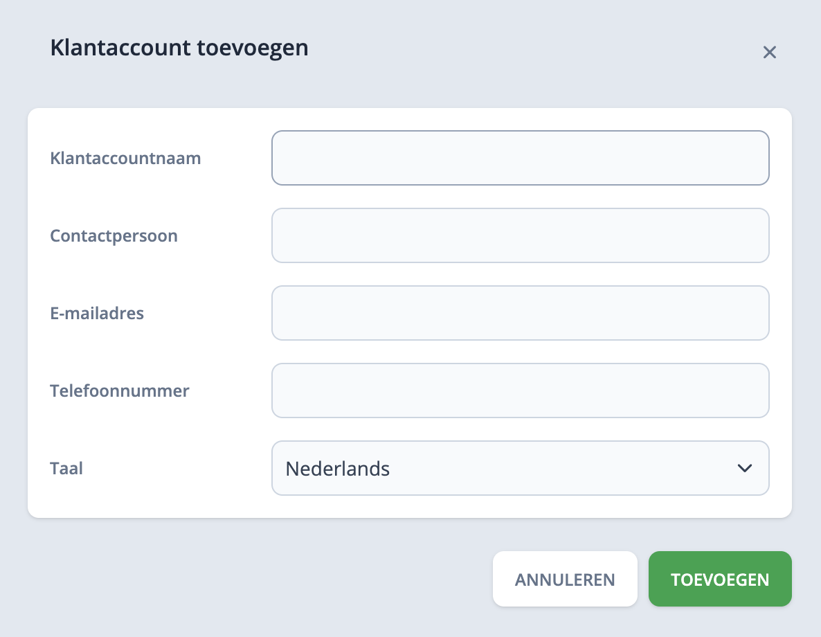 Klantaccount en gebruikers aanmaken